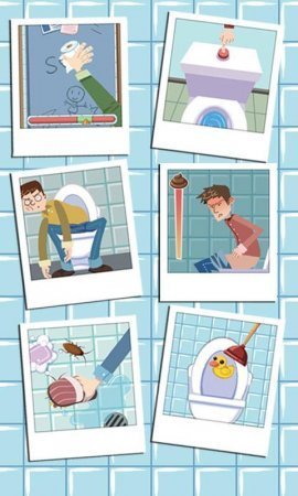 Приключения в туалете – предлагают сыграть в 14 разнообразных мини-игр. А что еще делать, если волей судьбы или злого умысла, вас заперли в туалете без надежды на скорое избавление. И что, плакать, жаловаться и унывать? Нет, это не для нашего героя. Наш человек любит развлекаться и находит развлечения повсюду, на дне океана, в открытом космосе и даже запертым в общественном туалете. Пусть ноют другие. Те, например, кто не сможет по малой или большой нужнее попасть в запертый туалет.