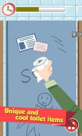 Игра Приключения в туалете, установленная на телефон или планшет на базе Андроид, это великолепный способ развлечься, находясь в «комнате для заседаний на одного», а также повеселить своих друзей. Покажите им прикол, пусть тоже примут участие в игре и весело проведут время с безобидной и даже немного хулиганской игрушкой. Также в игре вас ждет понятный интерфейс и легкое управление без лишних заморочек.