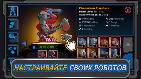 Экшен super mechs взломанная версия позволит создать своего уникального робота, используя для того мастерскую и магазин с выбором в тысячу деталей, узлов и оружия. Игровой процесс реализован таким образом, что модернизировать и улучшать робота можно месяцами, укрепляя его броню и навешивая более мощные пушки и лазеры.