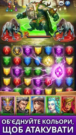 Первым делом займитесь развитием своего войска и главных героев. Призывайте под свои знамена прославленных воителей, обладающих различными качествами и цветами. Цвет бойцов очень важен, ведь в зависимости от того какие щиты вы ломаете, будет пополняться энергия героя с данным цветом. Когда специальная шкала заполнится до упора, вы сможете использовать в боях специальный навык персонажа.