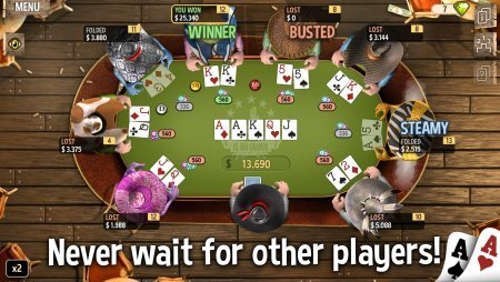 Governor of Poker 2 – игра не просто про покер, а возможность жить и дышать им. В этом ролевом симуляторе вам предлагается занять место за игровым столом в техасском салуне и попытаться обыграть ковбоев, среди которых будут и бандиты. В одиночной игре без интернета вас ждут характерные персонажи, которые обладают навыками лучших профессиональных игроков. Глядя в их бесстрастные лица, ни за что не угадаешь, какая карта пришла им на руки. Тем интереснее будет играть и выигрывать!
