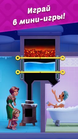 Прохождение начнется с порога дома, и первые задания не обременят излишней сложностью, однако постепенно миссии значительно усложнятся. Собирайте на игровом поле ряды из одинаковых элементов, зарабатывая за это очки опыта и полезные бонусы. После прохождения определенного уровня вы получите ящик с вознаграждением, которое можно потратить на различные улучшения и модификаторы. Покупайте полезные ускорители и красивую мебель, открывайте новые элементы декора и интерьера. Кроме этого вы сможете приобретать домашних любимцев и разблокировать новых уникальных персонажей, использовав мод на много денег.