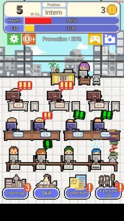 Взломанная версия игры Не уволься позволит снизить процент отказа, но даже при устройстве на работу не спешите радоваться, герою не суждено доработать не то, что до зарплаты, а и свой первый рабочий день, ведь стоит ему не выполнить просьбу хоть одного сотрудника, он будет автоматически уволен. Смешно, но чрезмерная старательность также может служить поводом к увольнению. И только после нескольких часов тотального невезения герой сможет устроиться на работу в компанию, в которой сможет продвигаться по карьерной лестнице. Ваша цель стать топовым менеджером или директором фирмы.