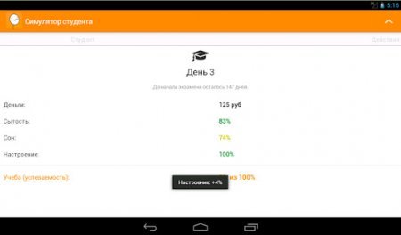 Симулятор студента – ролевая игра, где вам будет предложено вжиться в роль вечного студента. Главная цель – прожить как можно дольше, что не просто, ведь каждый день студент проживает с боем, и стоит вам только забыться и пропустить его обед, ужин или учебу, как прихотливый «питомец» умрет. В игре вы будете соревноваться сам с собой, каждый раз оживляя своего студента и предпринимая попытку прожить в этот раз дольше, чем в прошлые попытки, чтобы побить собственные рекорды.