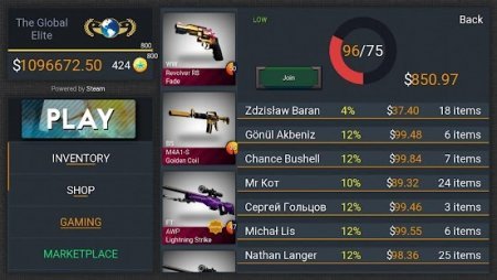 Станьте успешным экспертом оружейного искусства, приобретая новые скины, и открывая как можно больше кейсов. Удачное выполнение различных миссий и заданий, а также участие в мини-играх принесут в вашу казну неплохие денежные средства для дальнейшего продвижения и сбора действительно впечатляющего арсенала. Немного сообразительности и смекалки, щепотка везения и упорства, а еще мод на много денег – и вот, уникальное оружие вновь отправляется в вашу коллекцию. Для любителей взрывного адреналина авторы предложат поучаствовать в джек-поте, и если вас любит фортуна, то вы в одночасье станете счастливым обладателем целого собрания оружия.