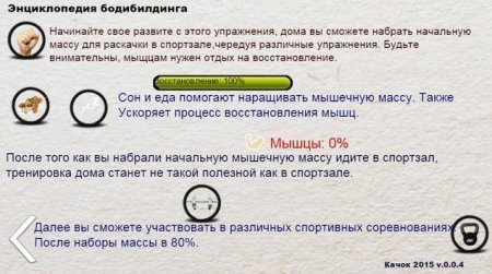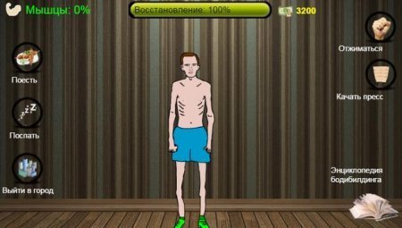 Для набора мышечной массы герой обязательно должен спать и есть. Также у него должно быть идеальное здоровье. Симулятор получился практически бесконечным, ведь нет придела совершенству. Ваш герой становится все сильнее, и это отличный повод и вам самому сходить в тренажерный зал.