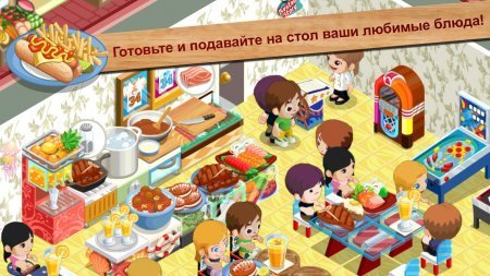 Выполняйте все функции владельца ресторана. Составьте великолепное меню, способное удивить даже привередливых гурманов, расширяйте заведение, обставляя его новыми элементами дизайна и интерьера. Чем более уникальным будет ваш ресторан, тем больше клиентов вы сможете привлечь, поэтому подключите фантазию и креативное мышление. Не забывайте правило – «клиент всегда прав», стараясь, чтобы ваши посетители остались в восторге не только от качественных блюд, но и оценили хорошее обслуживание и уютный интерьер. Выполняйте задания и зарабатывайте игровую валюту и баллы опыта, которые необходимо инвестировать в полезные улучшения ресторана и всех его элементов. Купите удобные диванчики, расширьте список блюд, добавляя в них экзотичные рецепты, стараясь привлечь в ресторан истинных ценителей хорошего вкуса.