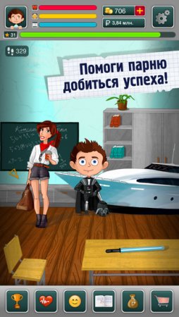 У героя несколько показателей, которые игрок должен контролировать, конечно, если не хочет каждый раз тратить деньги на оживление своего персонажа. Это уровни жизни, счастья и обучаемости. Все их нужно поддерживать на зеленой отметке, а при приближении любого уровня к красной черте, исправлять ситуацию. Для этого школьника нужно будет кормить, баловать его различными играми, удовольствием от покупки предметов и, конечно, хорошей успеваемостью. Чтобы там не было, а домашку придется делать. Правда, не обязательно самому. Ведь любой уважающий себя школьник может скачать домашнюю работу из интернета или заставить ее сделать слабого одноклассника.