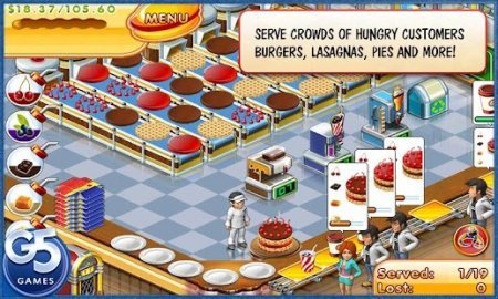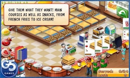 Полная версия игры мастер бургер 3 является точной копией РС-версии. Геймплей, атмосфера, графика – все не отстает от своего старшего брата. Используйте все возможности РС-версии для обслуживания голодных посетителей. Готовьте вместе с Ронни бутерброды, гамбургеры, пиццу и воздушные десерты и муссы. Откройте все 90 рецептов и 18 видов соусов, чтобы удовлетворить вкусы взыскательных клиентов. Взломанная версия включает в себя 75 уровней, причем за хорошее прохождение игрока ждет еще 12 бонусных уровней. Заработайте все 33 награды. Это не будет легко. Клиенты у Ронни очень требовательны, как и все голодные люди. Во-первых, они не хотят долго ждать заказа, поскольку очень заняты. Во-вторых, они капризничают по малейшему поводу и требуют, то включить, то выключить кондиционер, поменять музыку, уменьшить или увеличить ее громкость и постоянно достают просьбами Ронни, мешая сосредоточится на процессе приготовления. Но не обращать внимания на эти капризы не получится. Ведь довольный клиент оставляет больше чаевых и увеличивает капитал заведения. Кроме того в случае жалобы от рейтинга игрока могут отнять большой кусок, что негативно отразится на конечных результатах и завоевании наград. Откройте все 25 закусочных от Ронни в Голливуде и станьте самым крутым ресторатором города.