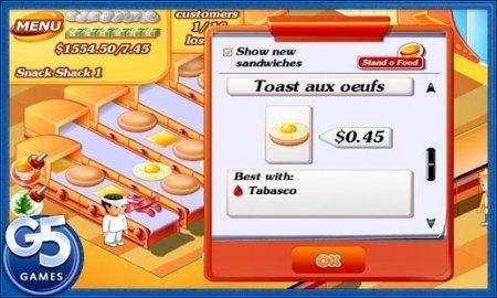 Чтобы убыстрить процесс приготовления вам понадобится не только закупить современное кухонное оборудование, но и провести его апгрейд до 20 уровня. Выберите один из игровых режимов – Квест или Час пик. В Квесте, вы будете получать задания от клиентов, и стараться максимально точно их выполнить, переходя с уровня на уровень, а в Час пике – вас ждет борьба за выживание вашей закусочной. Клиентов будет очень много, это просто нескончаемая очередь из людей, желающих отведать лучшие бургеры в мире, и всех их нужно как можно быстрее накормить. В игре содержится 100 уровней, во время прохождения которых вы не только подниметесь с закусочной до ресторана, но и весело проведете время за динамичной игрой-стратегией.