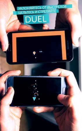 DUAL – игра из редкого жанра, ведь для того чтобы в нее играть вам обязательно понадобится друг со смартфоном, так как бои будут вестись на экранах двух мобильных устройств. Игровой проект довольно прост в плане дизайна и предлагает лишь смену цветового фона, а графика и вовсе схематичная. Хотя стоит признать, свой стиль у этой игры все же есть, и именно на фоне простоты в графическом плане, «прямо в яблочко» попадает игровой процесс.