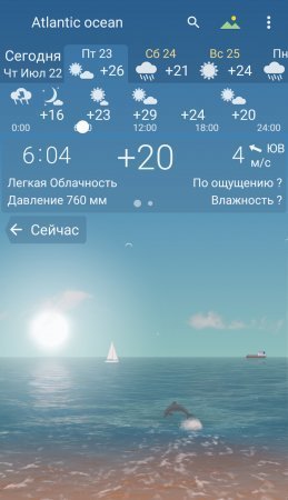 YoWindow полная версия сделает обычный прогноз погоды произведением искусства. Программа покажет реальную погоду на экране смартфона, а если вы хотите большего, то проведите пальцем по сенсорному экрану и по появившейся шкале определите, что вас ждет в плане погоды в ближайшие часы или дни. Кроме обычного температурного режима, имеется масса других параметров – скорость и направление ветра, давление атмосферного столба, процентное соотношение влажности воздуха, температура воды, в случае если вы живете рядом с морем или водоемом. Еще при желании можно посмотреть время восхода и заката небесных светил, узнать фазу луны, получить другие сведения касающиеся лунного календаря.