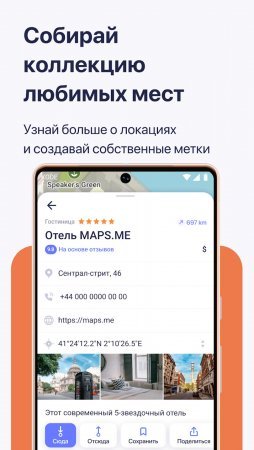 Приложение просто и удобно в эксплуатации и прочертить подробный маршрут вы сможете за пару кликов по экрану. Вместе с тем карты этого приложения отличаются высоким уровнем точности и тщательно детализированы с указанием на них даже второстепенных дорог и объектов туристической направленности. Устанавливайте удобные закладки своих маршрутов, чтобы они всегда были под рукой, кроме того имеется поддержка меток и координат по электронной почте или смс-сообщениям.
