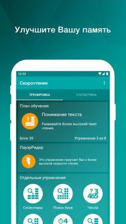 Скорочтение – мобильное приложение, которое поможет вам в краткий срок и без особых усилий освоить более высокую скорость чтения. В приложении собраны самые эффективные и современные методы повышения показателей в плане скорости усвоения любой печатной продукции. Проект «Скорочтение» поможет людям любых возрастных категорий значительно повысить скорость чтения, без ущерба для усвояемости материала.