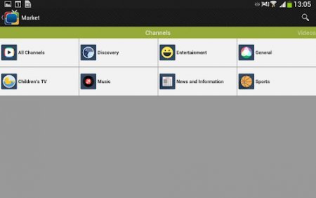 Центральную область интерфейса занимает главный экран, по которому транслируется кино или видео. В любой момент изображение можно сделать полноэкранным. Тут же в алфавитном порядке выводится список доступных каналов. Порядок вывода можно отфильтровать по своим параметрам или в случайном порядке. Что касается доступных каналов, то в основном это кабельные телеканалы. Среди них есть полностью посвященные детям, такие как «Карусель», несколько музыкальных, каналов с кино, познавательными материалами, посвященных новостям или спорту. Еще несколько каналов транслируются на иностранном языке, для тех пользователей, кто хочет подтянуть свой английский или французский. Есть и несколько каналов из федерального телевиденья, с показом развлекательных шоу, кино и выпусками новостей.