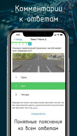 После того как правила изучены, пользователь может проверить усвоение материала, отправившись в режим Теста. Тест проводиться на тех же основаниях, что и государственный экзамен. В случайном порядке пользователь получает 20 вопросов, с тремя вариантами ответов на каждый. После каждого ответа появиться системное сообщения – правильно или нет ответил пользователь, и в случае если нет, будет дан правильный ответ с развернутой информацией по всему вопросу.